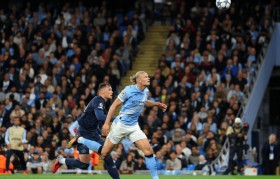 欧冠联赛阶段第1轮的一场比赛展开争夺,曼...